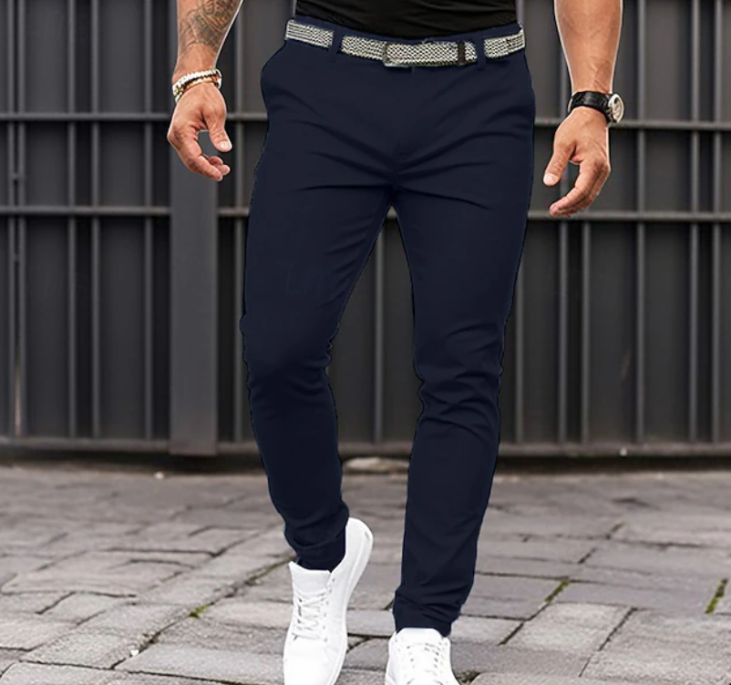 Elevate your style with these bold slim-fit trousers that blend a clean, athletic silhouette with everyday comfort. Designed for the modern man, the Marcus trousers offer a sharp look without compromising on comfort. The soft, stretchy fabric moves with you, while the tapered cut ensures a neat, fitted appearance. Perfect for nights out, casual days, or dressing up a simple t-shirt and trainers.